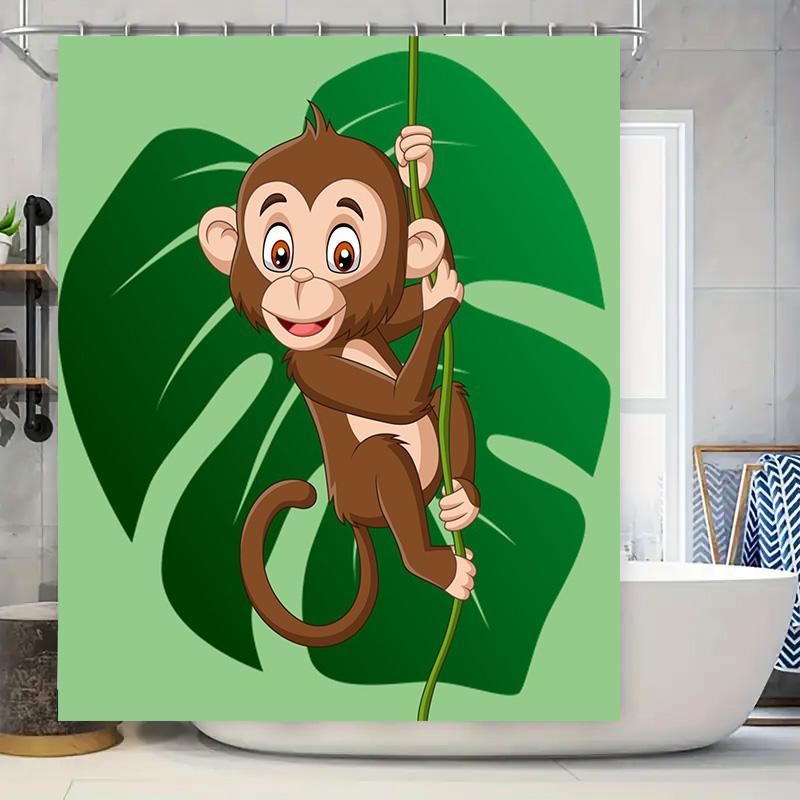 Cute Monkey Cartoon Shower Curtain with Green Leaf Design for Bathroom Decor Animal Print Home Decoration In Bath Curtains from