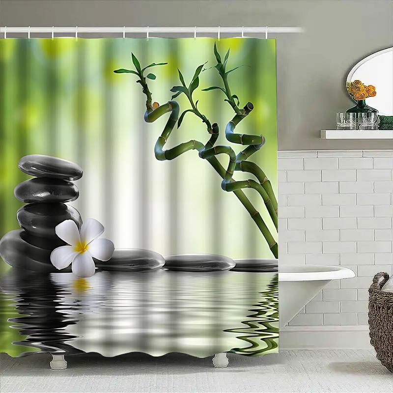 Zen Spa Shower Curtain - Tranquil Stone and Bamboo Design for Relaxing Bathroom Ambiance Waterproof Durable Elevate Space