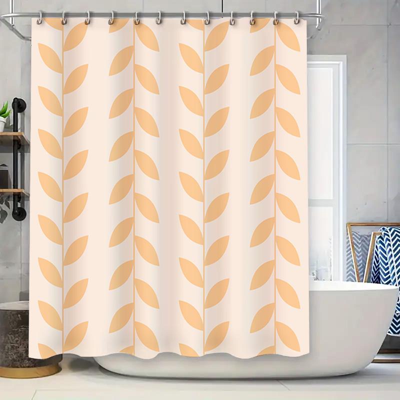 Modern Decorative Shower Curtain with Leaves Pattern for Bathroom Waterproof Protection Soft Fabric Material In Multiple Colors