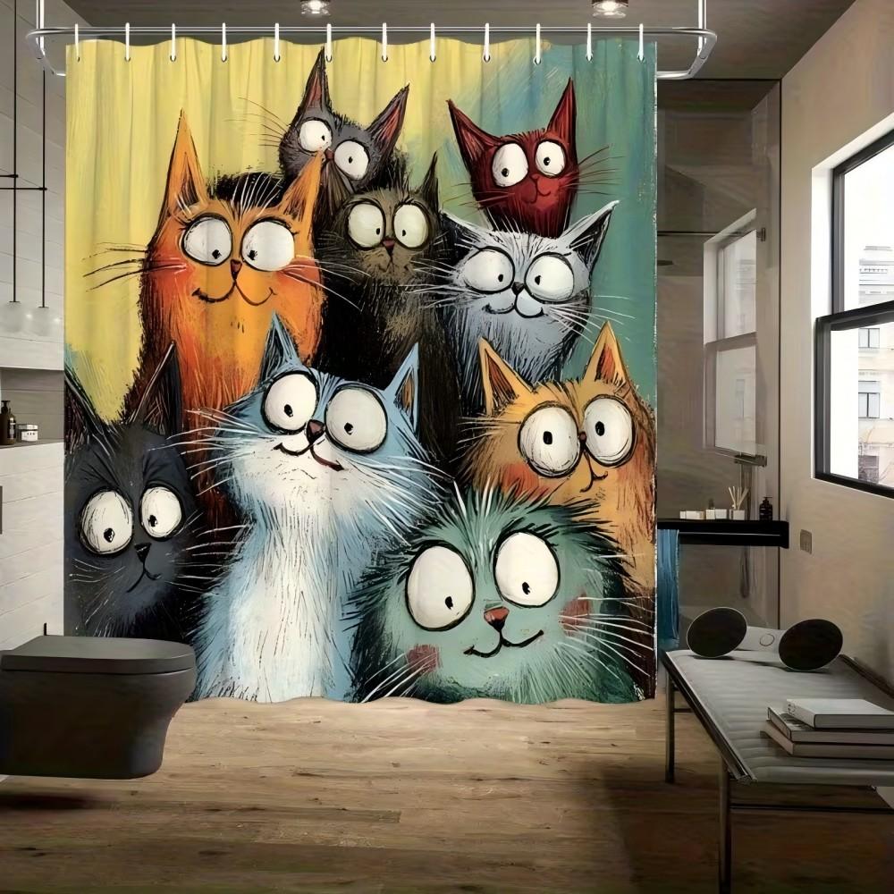 VIKAMA Ins-Style Illustrated Shower Curtain Waterproof & Mould-Resistant Bathroom Shower Curtain Dormitory Curtain Home Decor