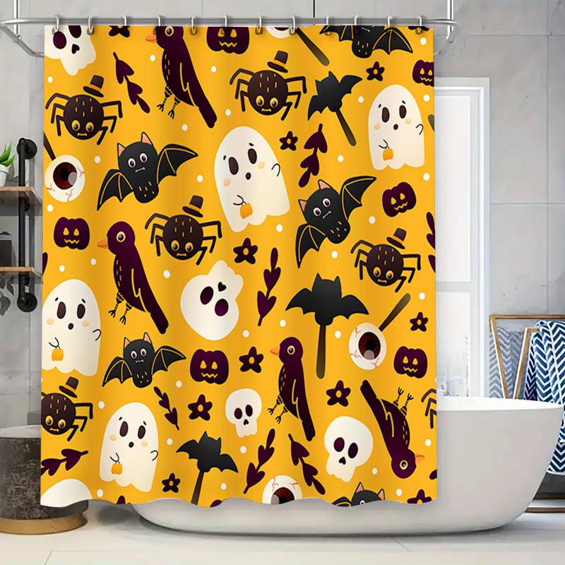 Halloween-themed Shower Curtain with Ghostly Designs Waterproof Fabric for Bathroom Decor