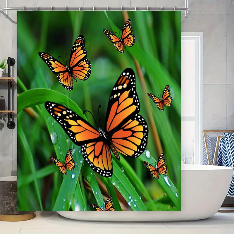 Butterfly Printed Shower Curtain Home Decor Waterproof Polyester Fabric Yellow Black Orange Butterfly Garden Bath Rug Decoration
