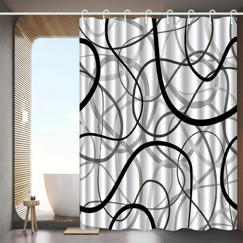 1pc Black and White Irregular Striped Patterned Shower Curtain, Machine Washable Polyester, Suitable for Bathroom Decoration.