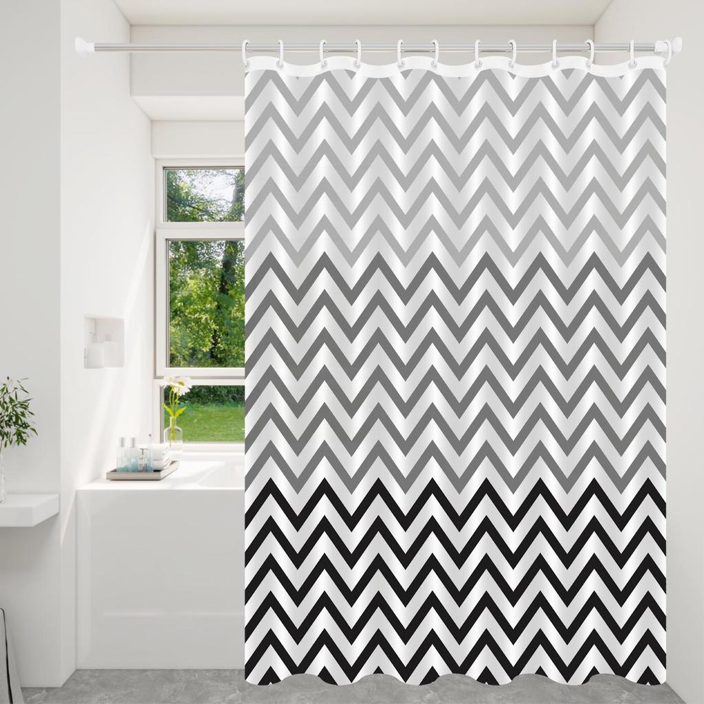 1pc Black White Wavy Stripe Artwork Geometric Shower Curtain Waterproof PEVA Modern Minimalist Bathroom Decor