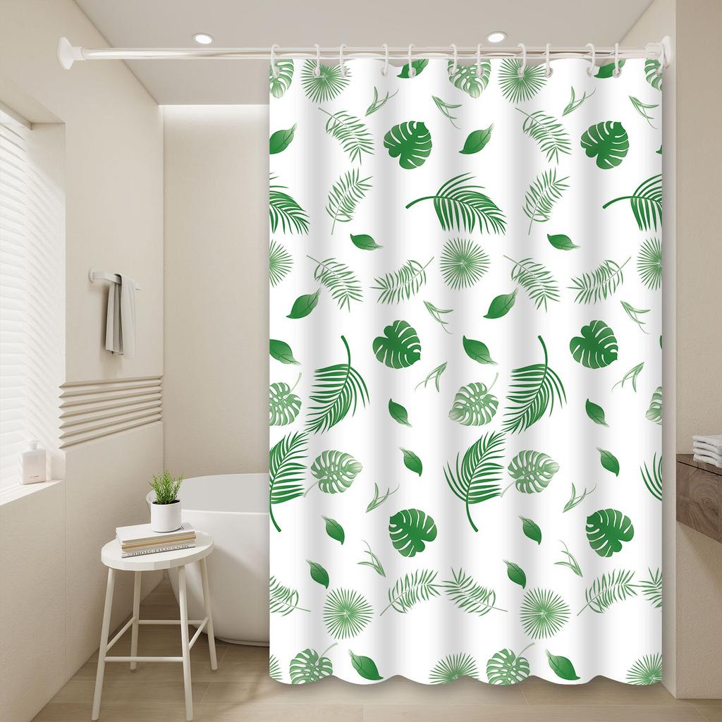 1pc Green Tropical Leaf Popular Shower Curtain Waterproof PEVA Botanical Bathroom Decor