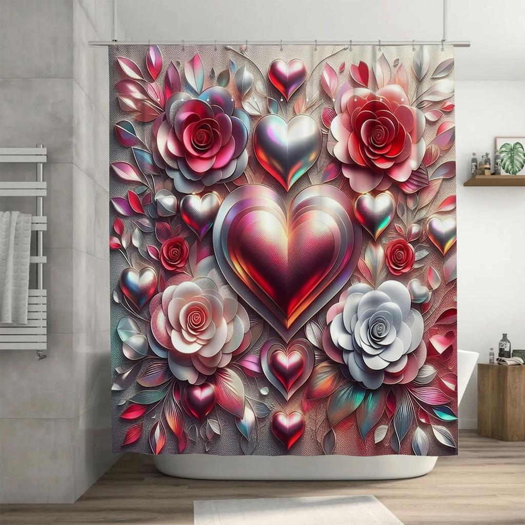 Luxurious 3D Floral Heart Shower Curtain - Waterproof, Mildew-Resistant, Machine Washable for Elegant Bathroom Decor