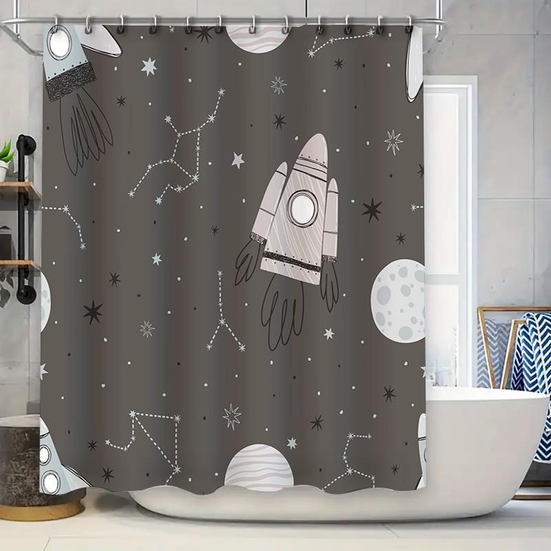 Starry Night Space Rocket Waterproof Shower Curtain Home Decor for Bathroom Decoration