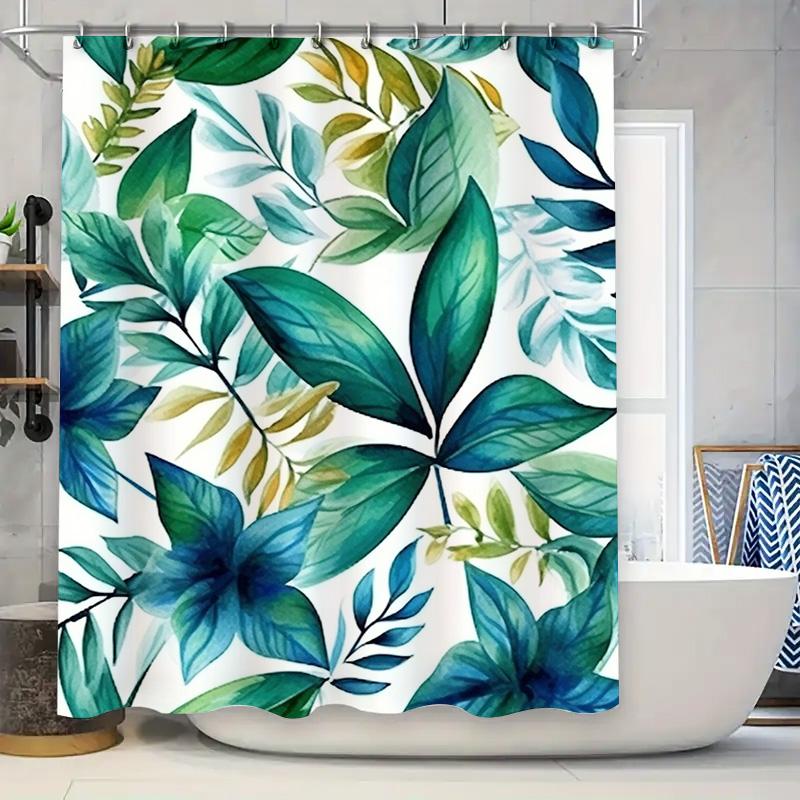 Green Leaf Shower Curtain 3D Printed Waterproof Bathroom Decor Fresh Floral Print Fabric Shower Curtains for Home Decoration Whi