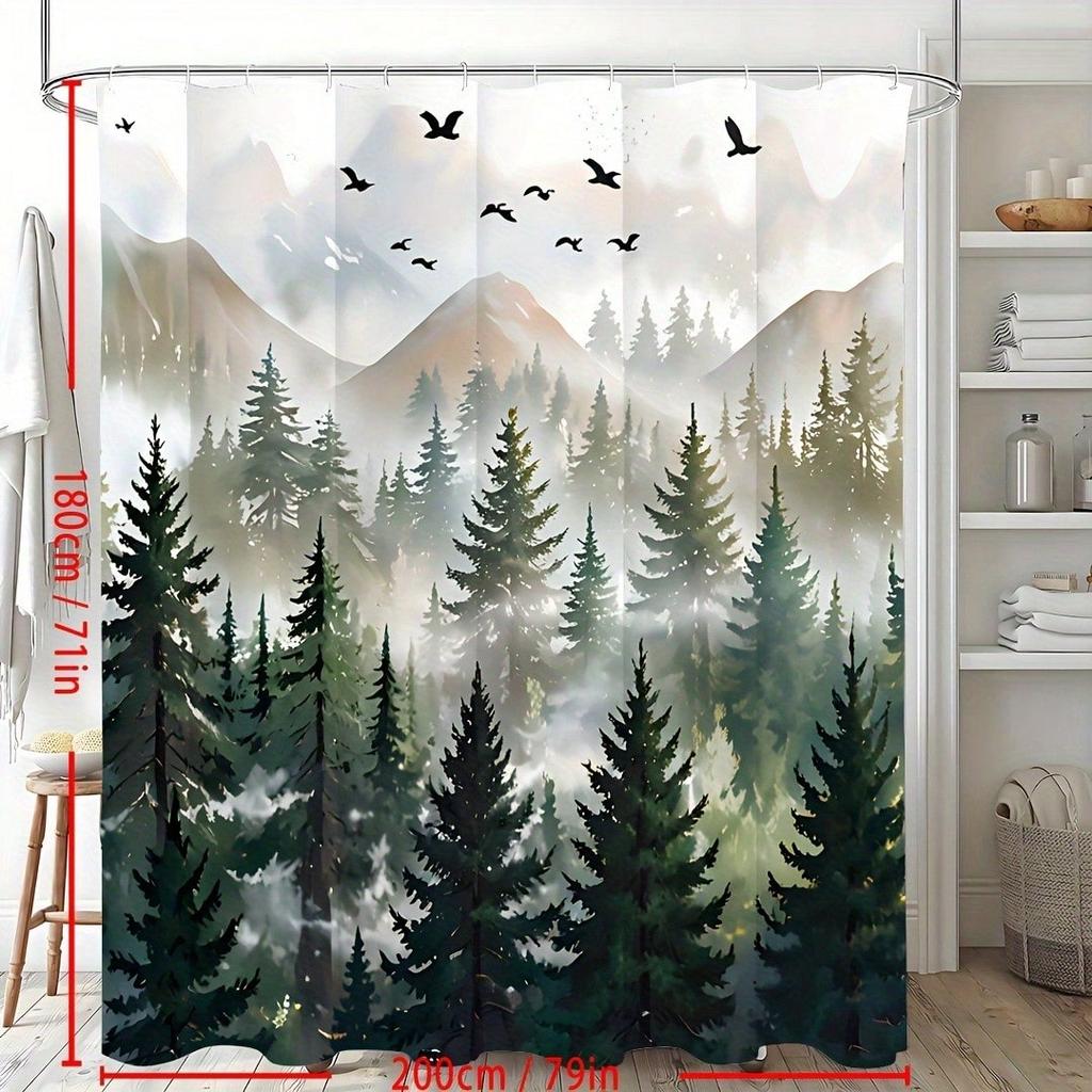 Misty Mountain Shower Curtain: Embrace the Serene Design, Soft Fabric, and Nature Vibes for Your Calm Bathroom