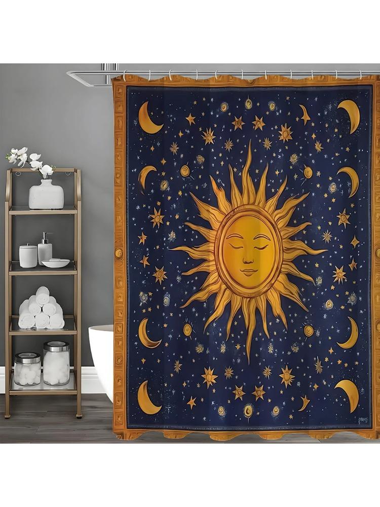 Sun God Moon Stars Shower Curtain, Bathroom Decorative Shower Curtain, Waterproof Shower Curtain with Hooks