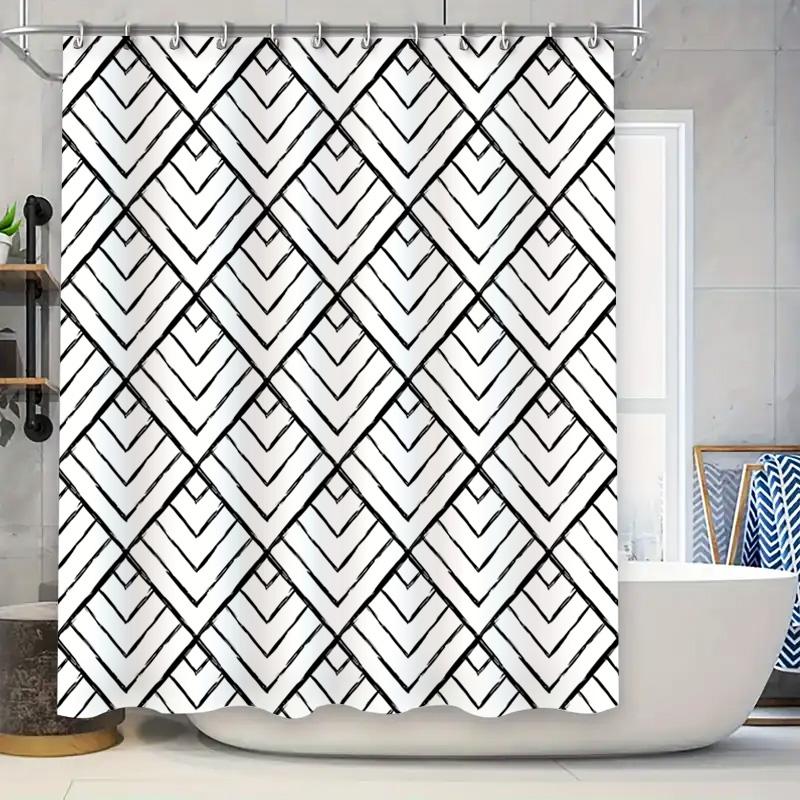 Black White Chevron Shower Curtain Modern Bath Decor for Bathroom Polyester Fabric Size 72x84 Inches (183cm X 213cm)
