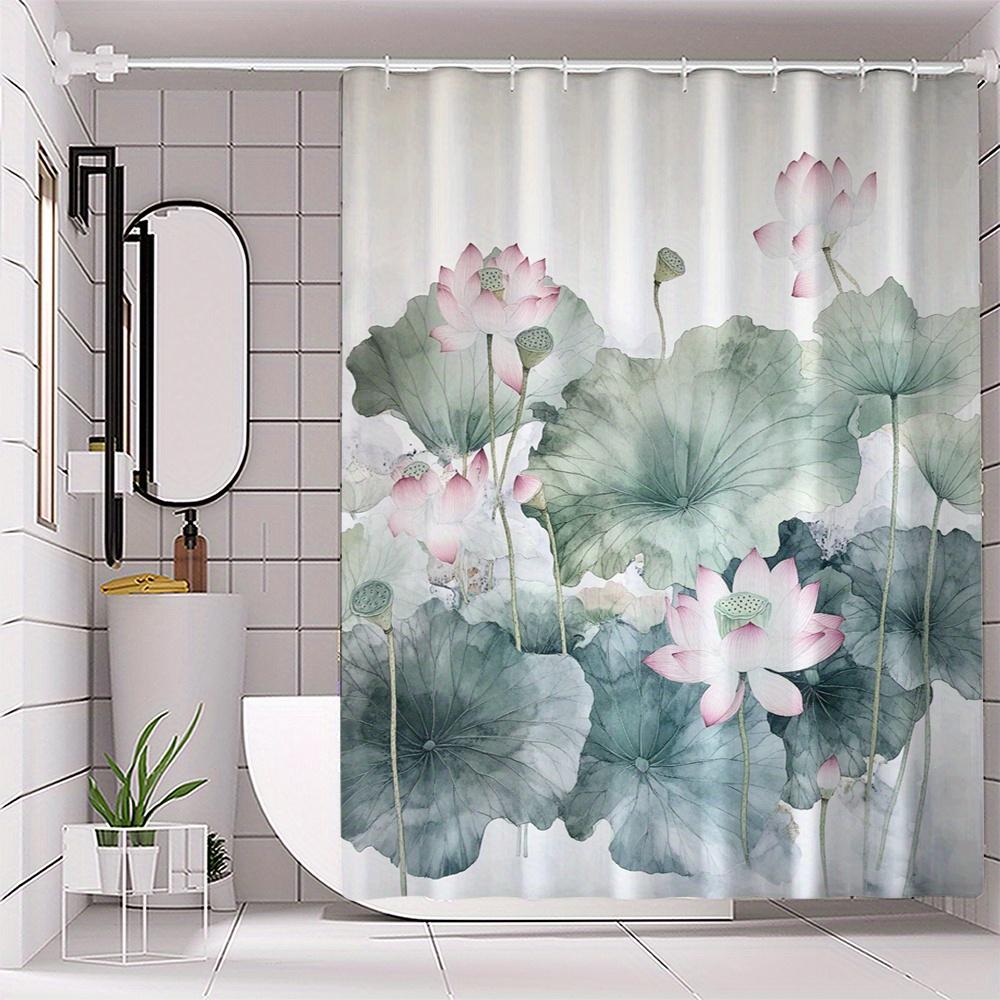 1pc Ink Lotus Leaf Digital Printed Polyester Shower Curtain, Waterproof, With Hook, Cartoon Animal Theme, Machine Washable