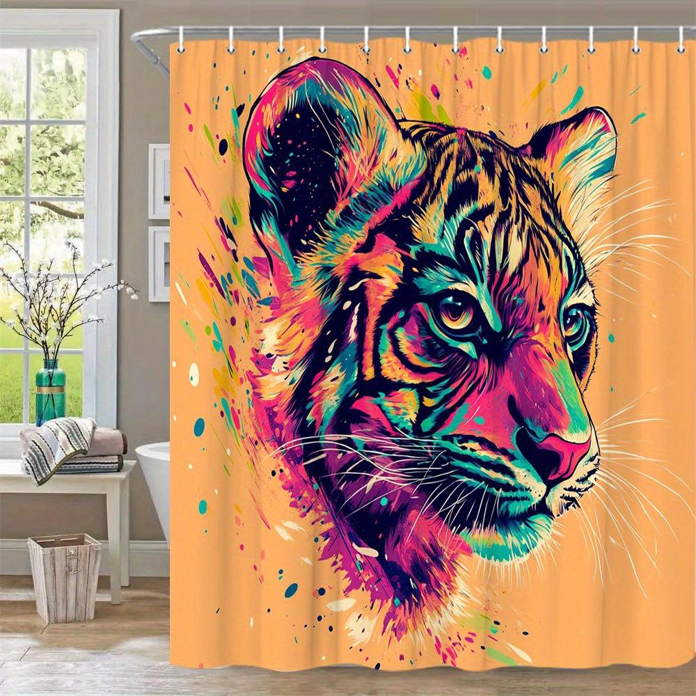 1pc Vibrant Tiger Shower Curtain - Abstract Art Design with Bold Pink, Blue, Green, Yellow Strokes, 70. 86x70. 86 Inches, Polyes