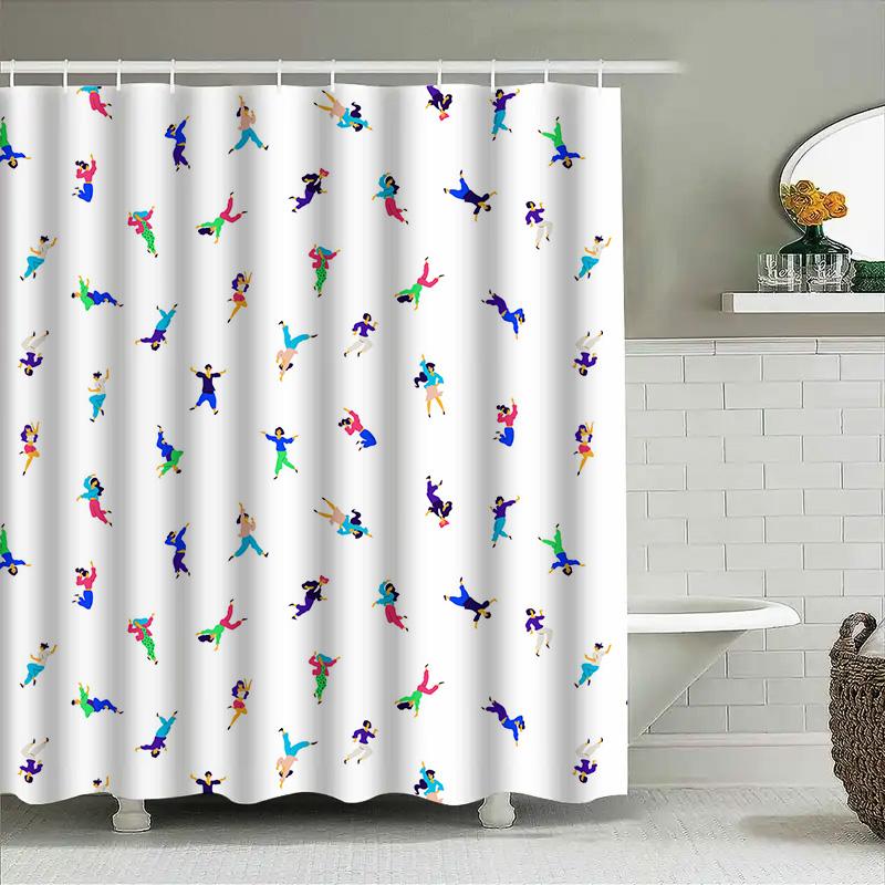 Colorful Bathroom Shower Curtain Waterproof Fabric Decorative Modern Design Printing for Home Decoration White with People Danci