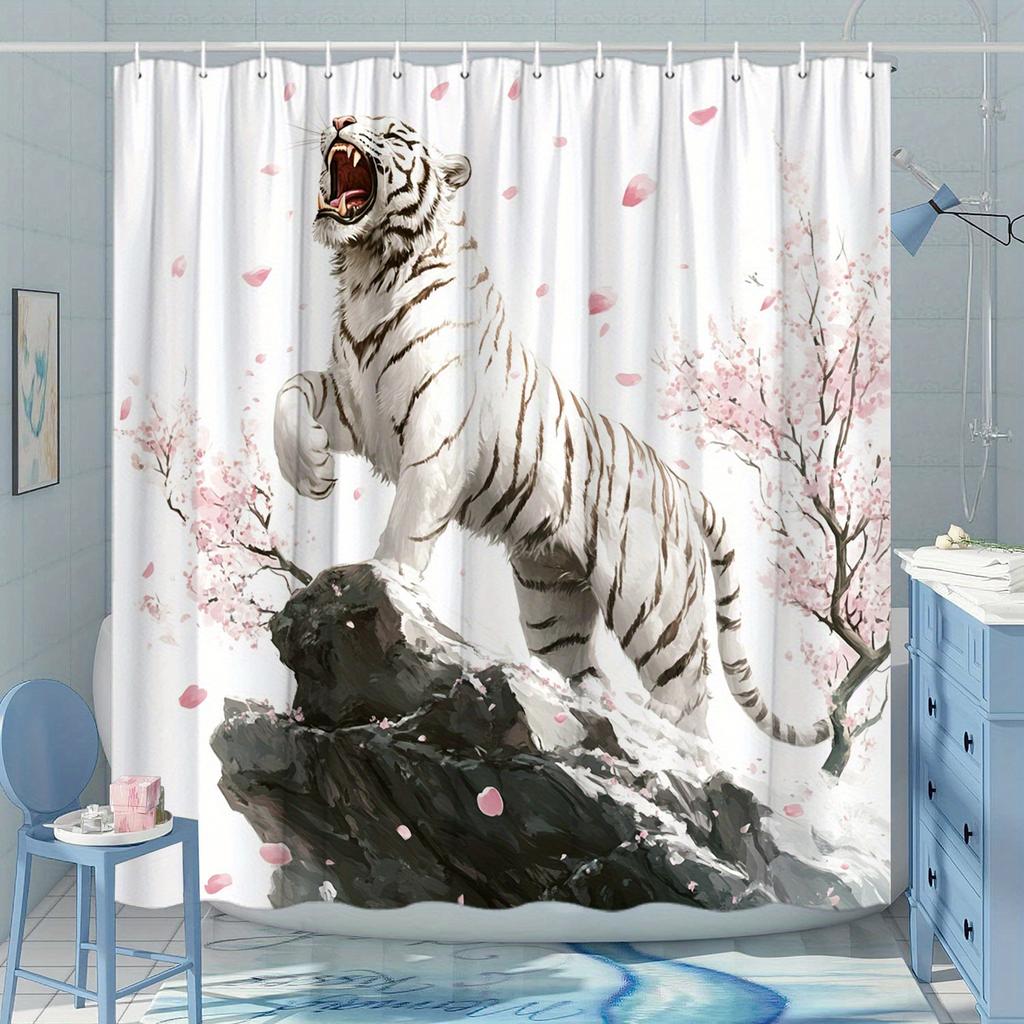 Roaring White Tiger Shower Curtain - Water-Resistant Fabric for Bathroom - Ideal for Wildlife and Nature Lovers