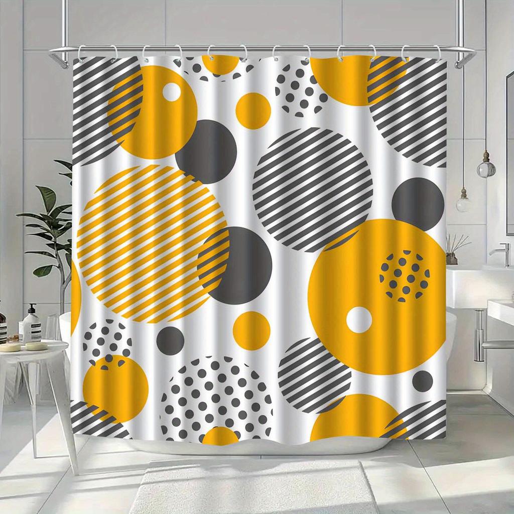 1pc Modern Circular Geometric Pattern Shower Curtain, Polyester Fabric, with Hooks, Suitable for Bathroom Décor.