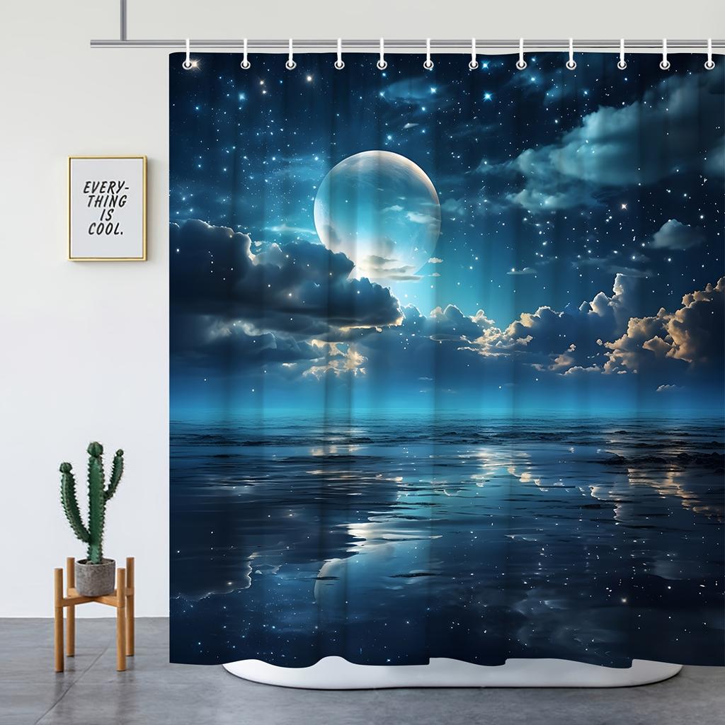 Mystical Moonlit Ocean Shower Curtain - Water-Resistant Fabric for Bathroom - Ideal for Nature and Lunar Enthusiasts