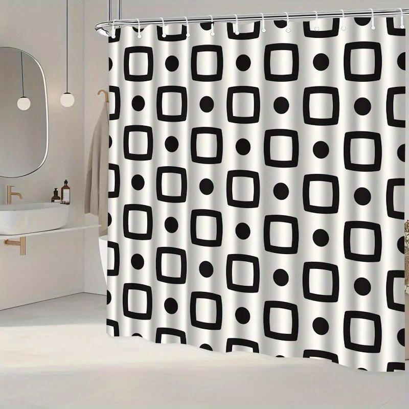 1pc Simple Geometric Patterned Shower Curtain with Hooks, Machine Washable Polyester, Suitable for Bathroom Decor.