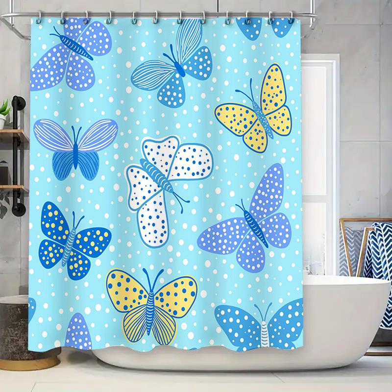 Butterfly Pattern Shower Curtain Waterproof Bathroom Decoration 180x275cm Blue Yellow White Polka Dot Bath Tapes Shower Curtain