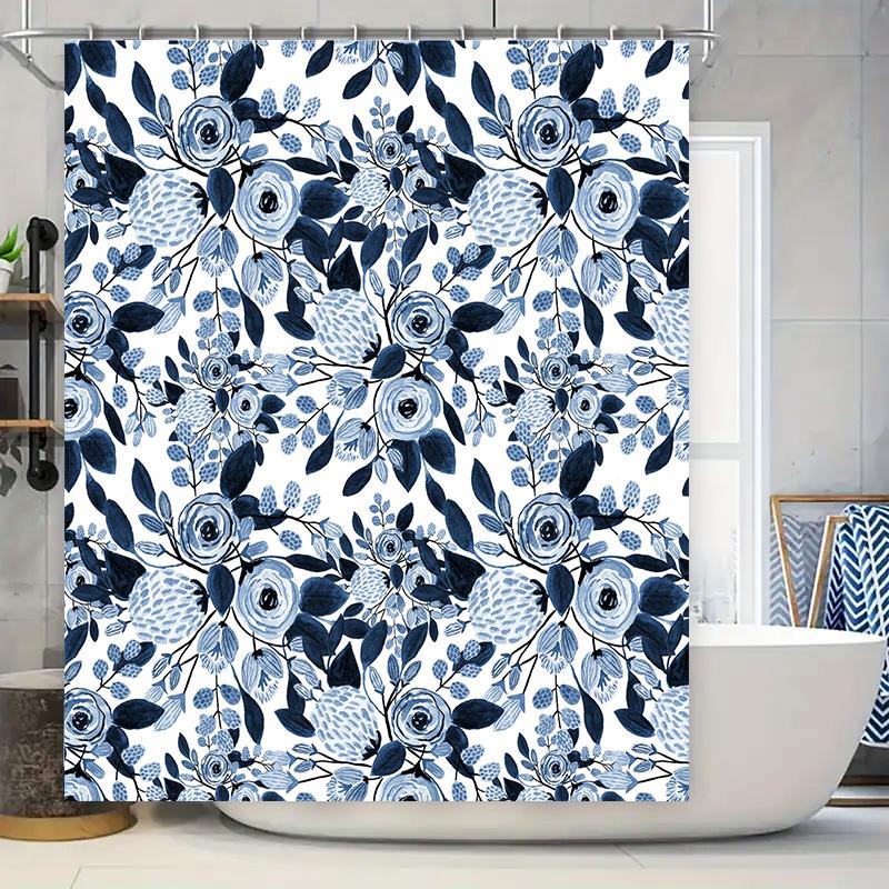 Blue White Floral Shower Curtain Modern Bathroom Decor for Home Decoration Long Lasting Waterproof Fabric with Eyelet Rings Perf