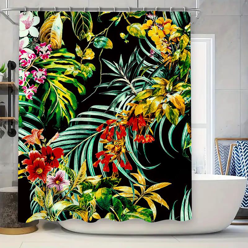 Exotic Floral Shower Curtain Greenery Bright Bloom Decor High-Quality Fabric with Water-Resistant Coating for Bathroom Decoratio