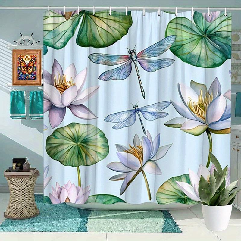 Water Lilies and Dragonflies Shower Curtain - Water-Resistant, Easy To Clean, Adds a Serene and Natural Touch To Your Bathroom