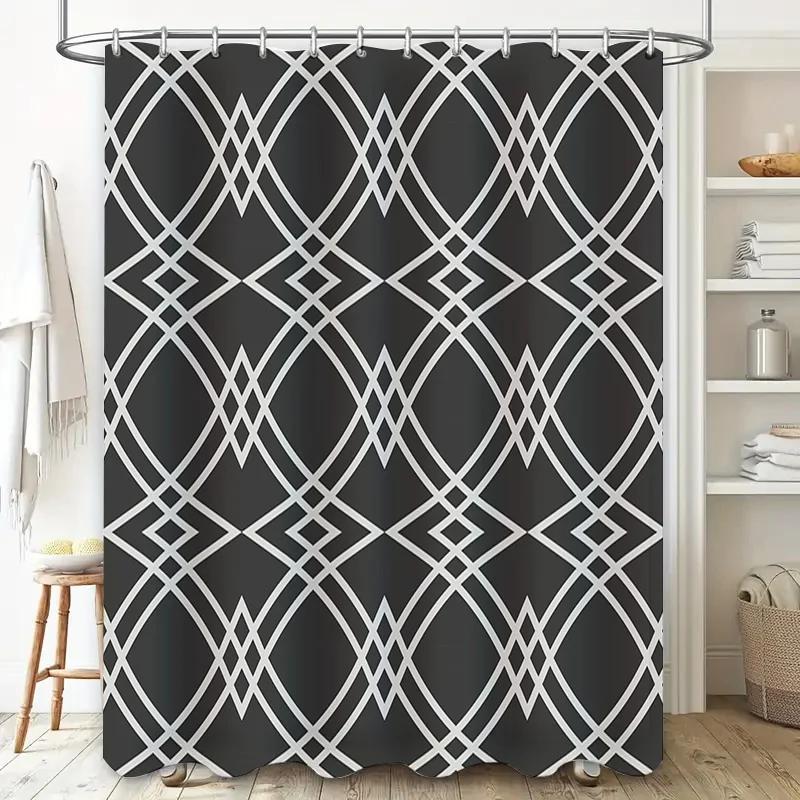 Modern Geometric Shower Curtain Waterproof Bathroom Decor for Home Decorations Black White Striped Pattern Design
