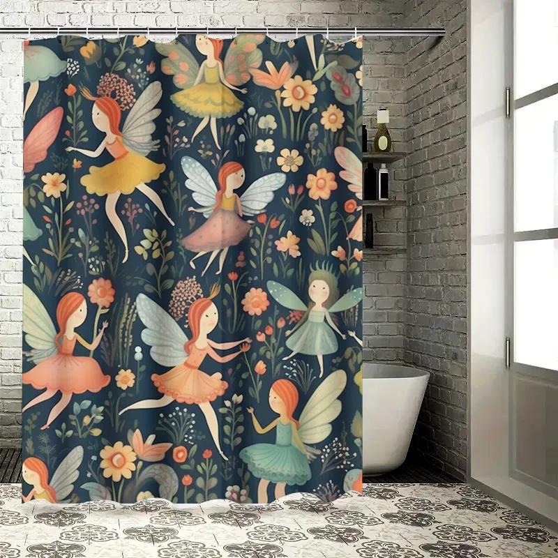 Whimsical Fairy Garden Shower Curtain Colorful Floral Design for Bathroom Decor Extra Long Waterproof Fabric with Hooks Incl
