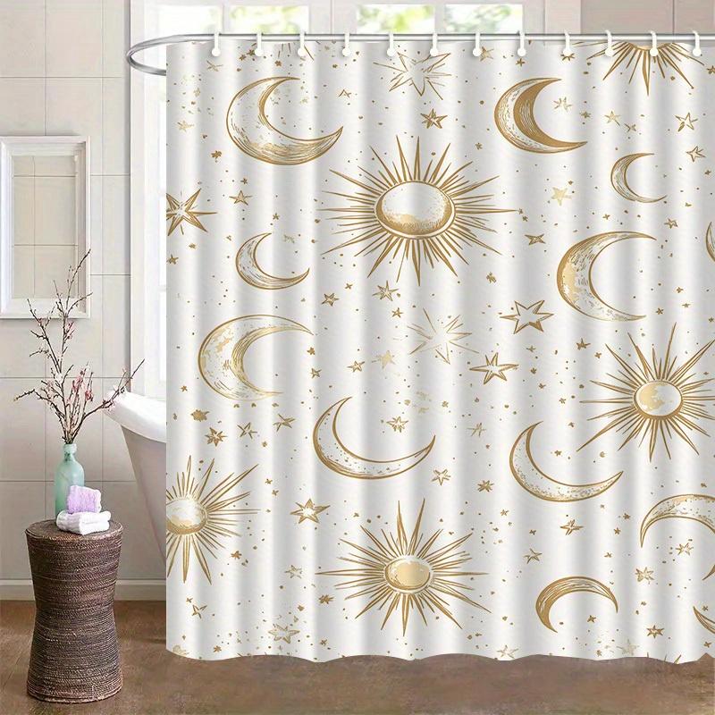 1pc Golden Starry Sky Pattern Shower Curtain, Polyester Fabric, Machine Washable, with Hooks, Suitable for Bathroom Decoration.