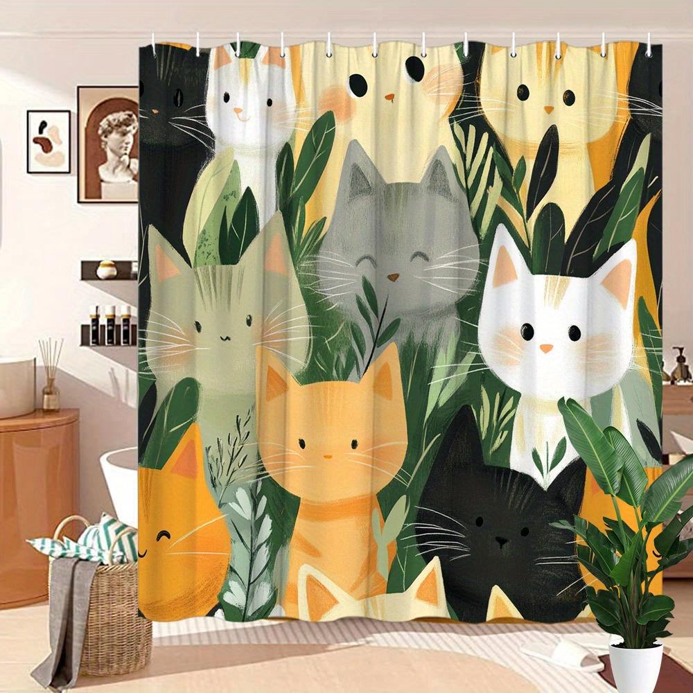 Cute Cats In Various Poses Shower Curtain - Water-Resistant, Easy To Clean, Adds a Fun and Adorable Touch To Your Bathroom Decor
