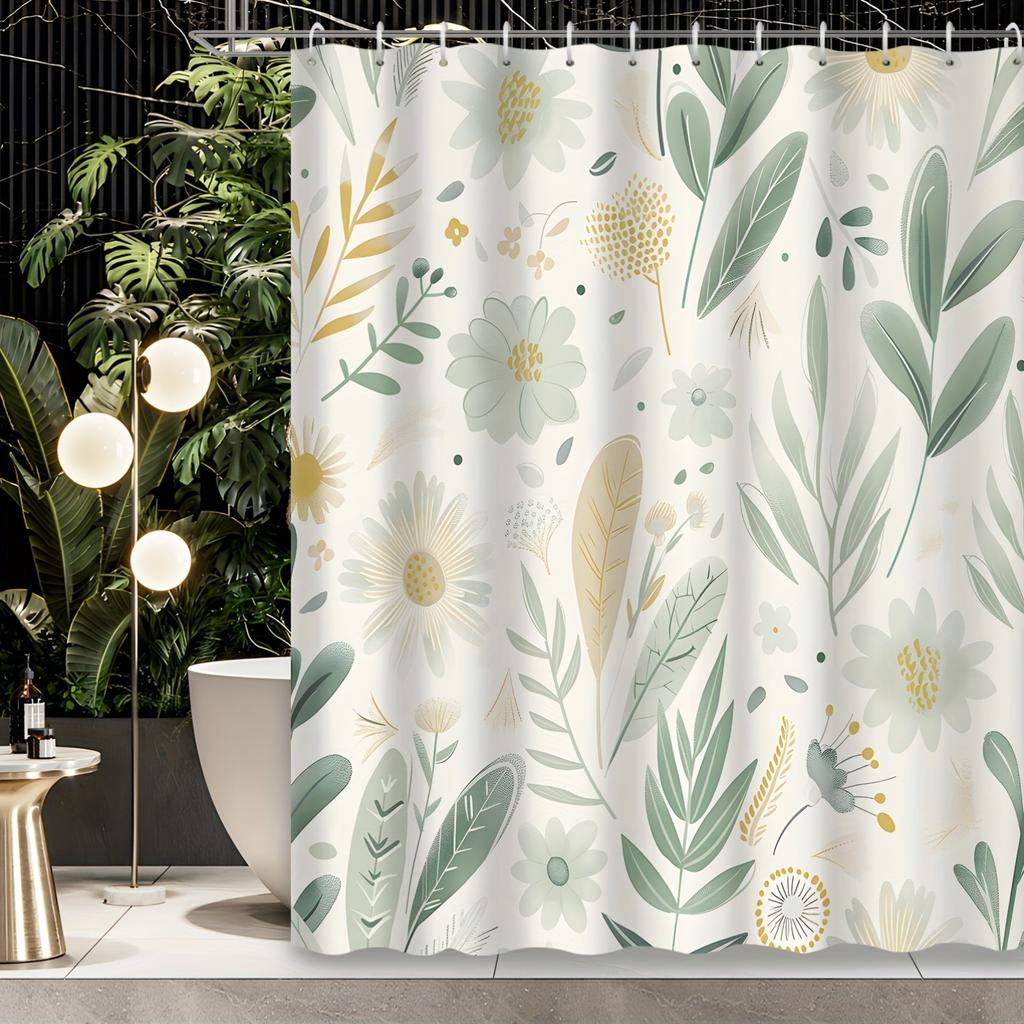 1 Piece Small Fresh Green Flower Farmhouse Watercolor Pastoral Natural Decoration with Hook Shower Curtain Polyester Fabric