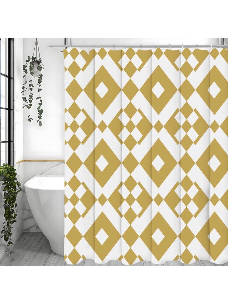 Creative Geometric Yellow Shower Curtain, Bathroom Decorative Shower Curtain, Waterproof Shower Curtain with Hooks