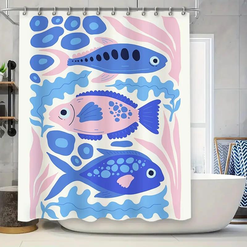 Blue Fish Blue Pink Bath Shower Curtain Waterproof Fabric Decorative Home Bathroom Tiling Decorations Private