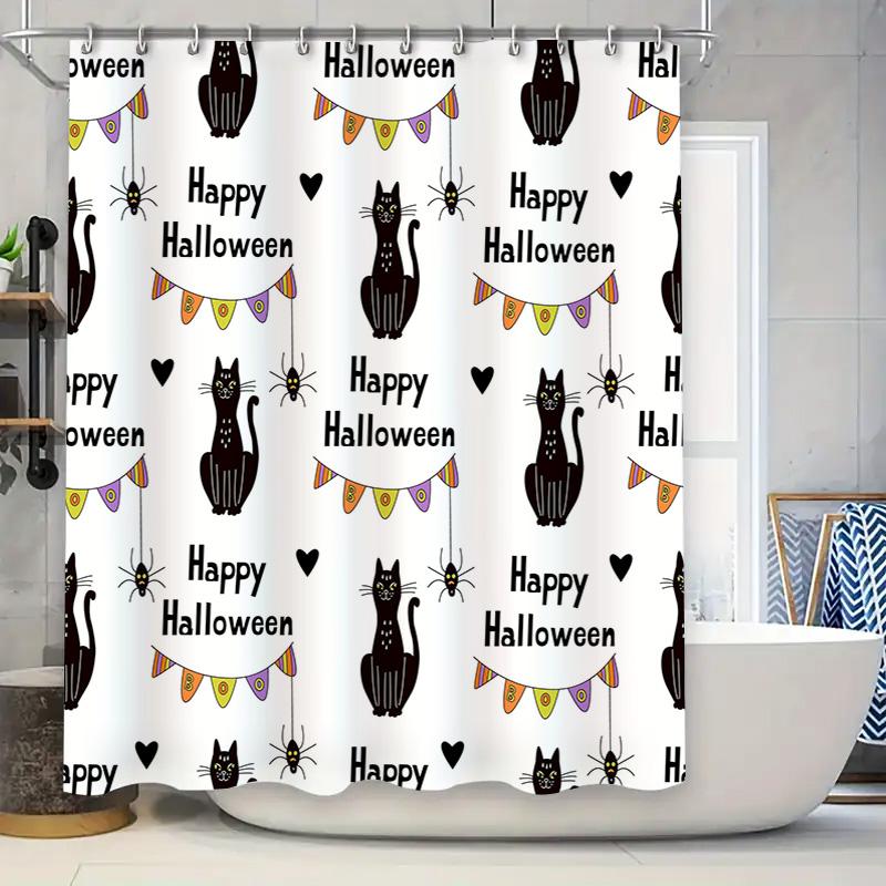 Halloween Shower Curtain Decor Black Cats Banners Print Pattern for Bathroom Window Waterproof Fabric Washable Home Textile Gift