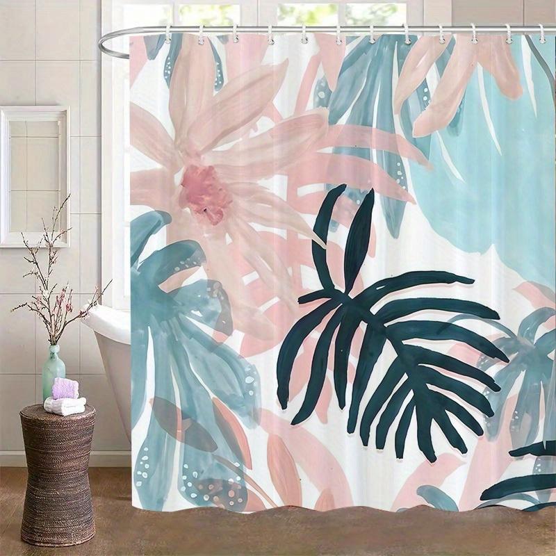1pc Tropical Floral Pattern Shower Curtain, Polyester Fabric, Machine Washable, with Hooks, Suitable for Bathroom Décor.