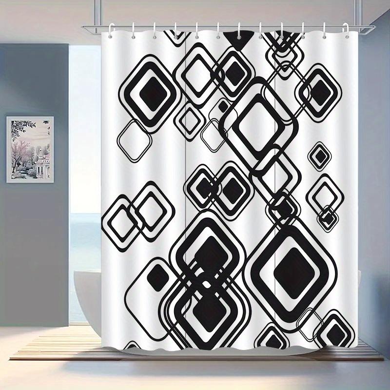 1pc Black and White Checkered Shower Curtain - Polyester Fabric, Machine Washable, with Hooks, Suitable for Bathroom Décor.