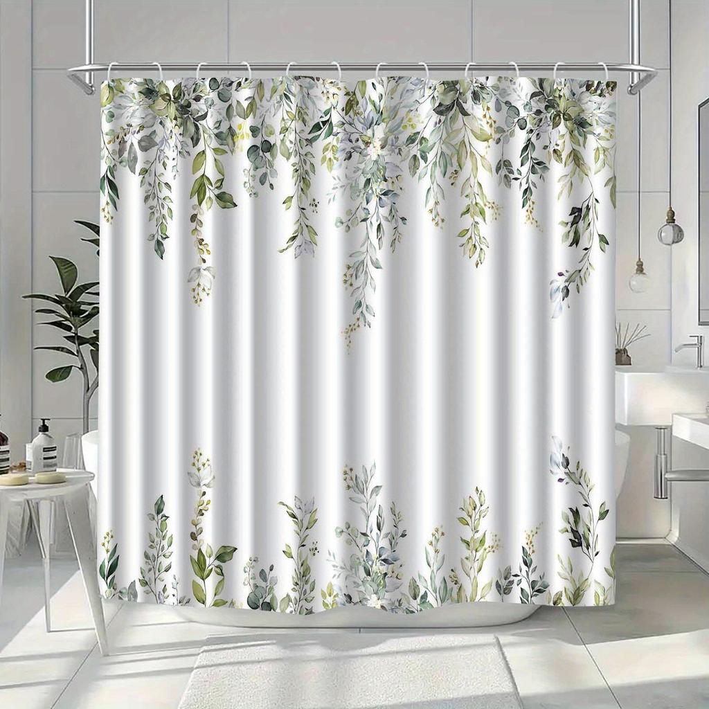 1 Piece of Plant Leaf and Vine Pattern Shower Curtain, Polyester Fabric, Machine Washable, Suitable for Bathroom Decoration