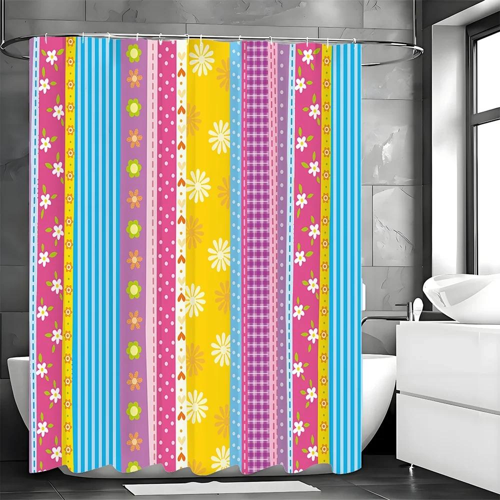Colorful Striped Shower Curtain, Bathroom Decorative Shower Curtain, Waterproof Shower Curtain with Hooks 180x200cm