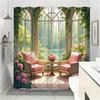 1pc Idyllic Garden Shower Curtain - Pink Roses, Sunlit Windows, Lush Greenery & Tranquil Pond, Romantic Spring Design,70.8x70.8"