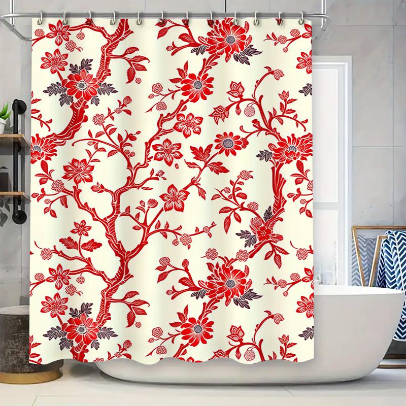 Red Floral Shower Curtain Red Flower Print Home Decor Bathroom Decoration Waterproof Shower Curtain 36x72in/90X183cm (White Back