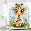 1pc Cartoon Giraffe Shower Curtain Vibrant Digital Illustration with Flowers Light Blue Sky 12 Hooks 70*70 Inchess