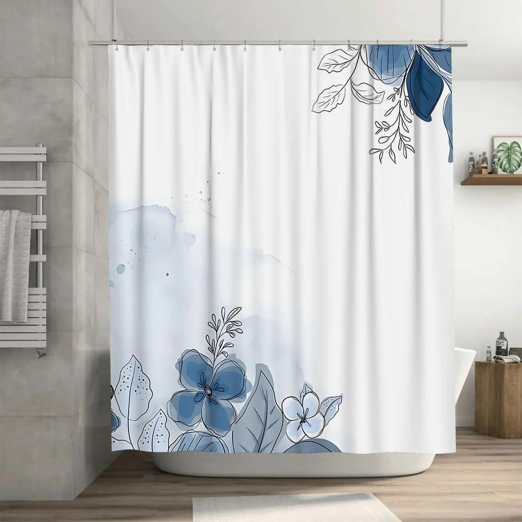 Blue Floral Design Shower Curtain for Bathroom - Waterproof and Durable with Rust-Proof Hook Suitable for Wet and Dry Separation