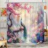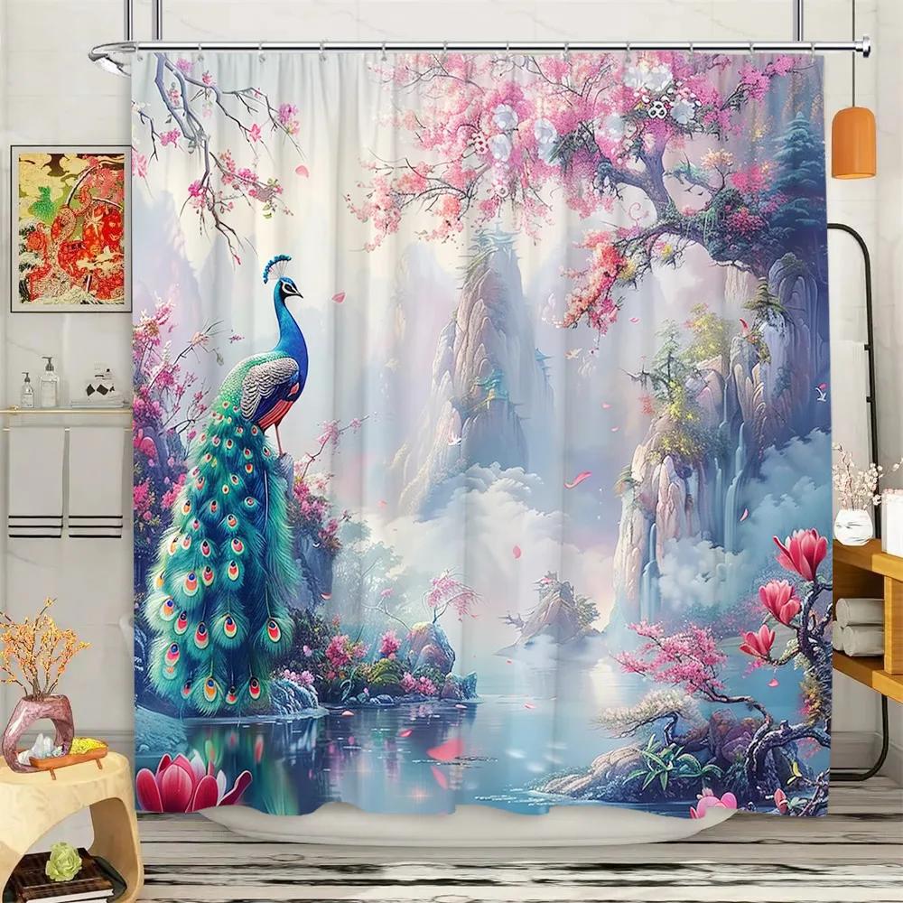 Peacock Shower Curtain Tropical Plant Flower Leaf Landscape Vintage Oil Painting Elegant Polyester Fabric Bathroom Decor Curta