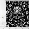 Sugar Skull Shower Curtain Gothic Halloween Watercolor Vintage Floral Spooky Skeleton Skull Horror Fabric Bathroom Decor Set