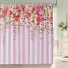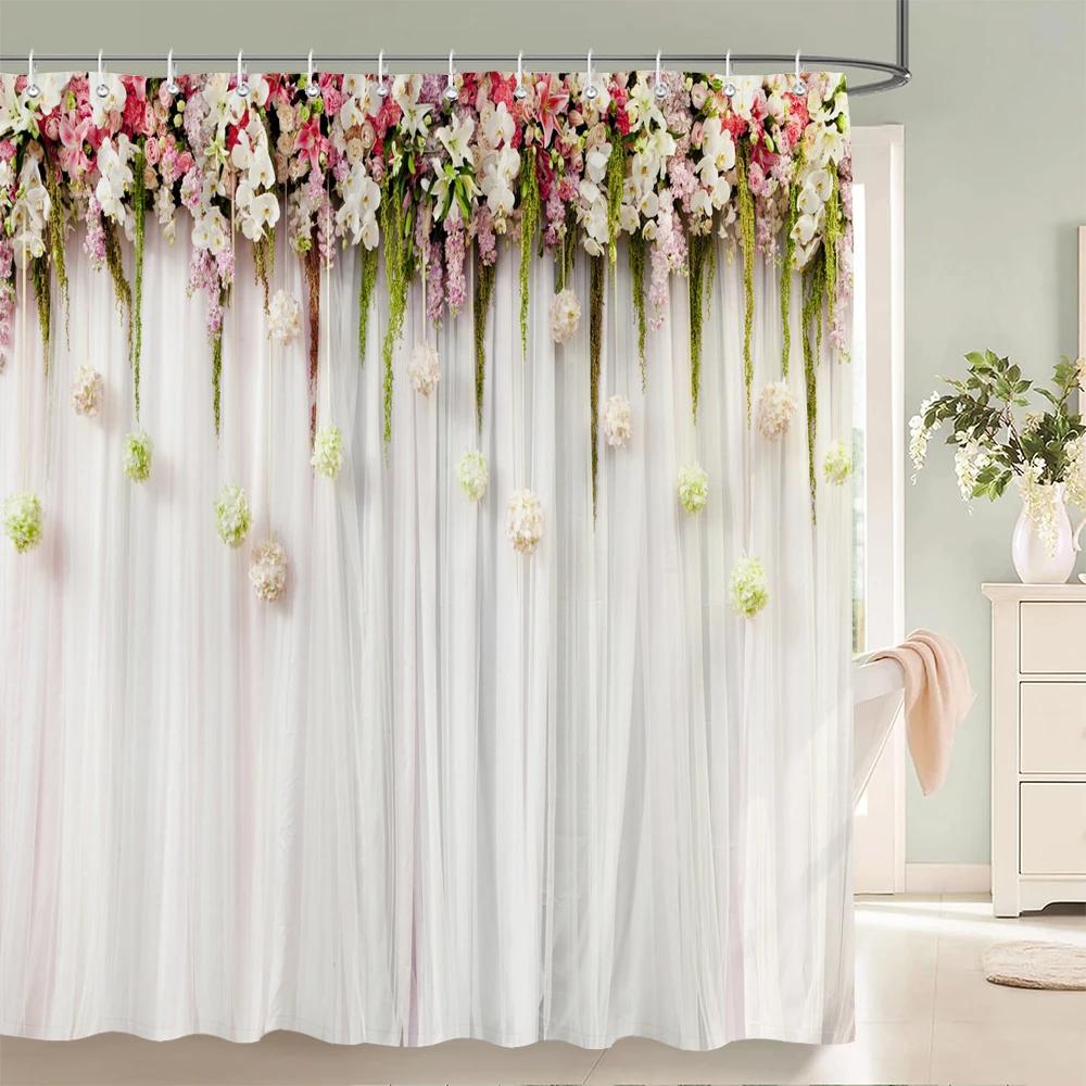 Home Shower Curtains for Bathroom Waterproof Fabric Nordic Style Artificial Flower Wall Pattern Bathroom Curtains Shower Curtain