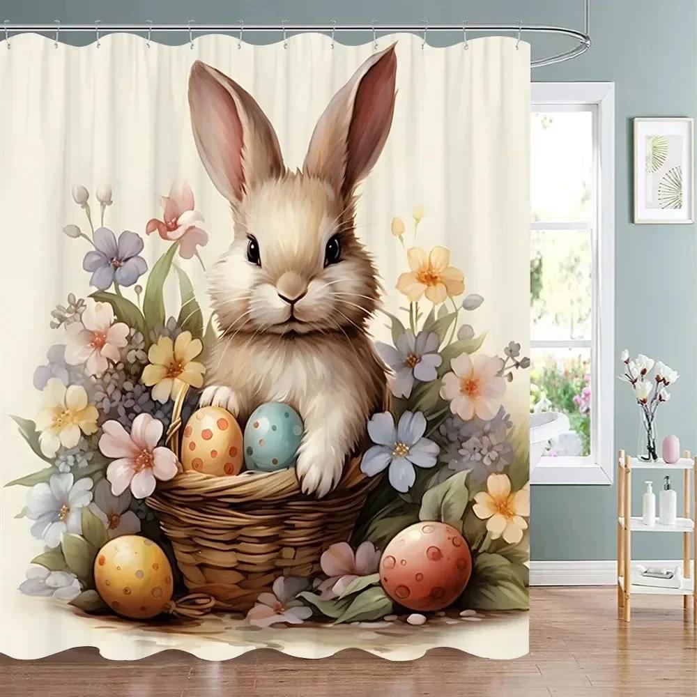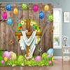 Easter Shower Curtain Happy with Bunny Eggs Vintage Style Bathroom Decoration