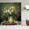 Retro European Shower Curtain ,Flowers Printed Bath Curtain Polyester Fabric Western Style Home Bath Decor Curtains With Hooks
