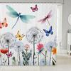 Dragonfly Watercolour Shower Curtain Dandelion Lavender Flower Polyester Fabric Home Art Bath Curtains Bathroom Decor with Hooks