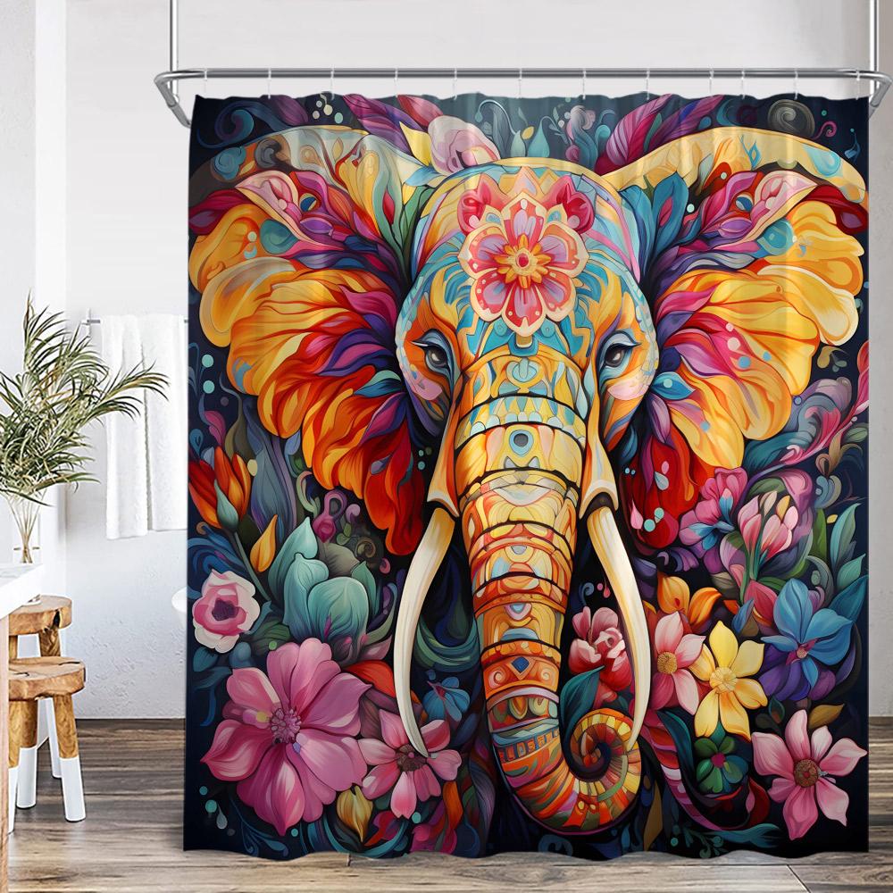 Elephant Boho Shower Curtain Mandala Colorful Flower Doodle Wild Animal Art Bathroom Decior Ethnic Indian Bath Curtain with Hook