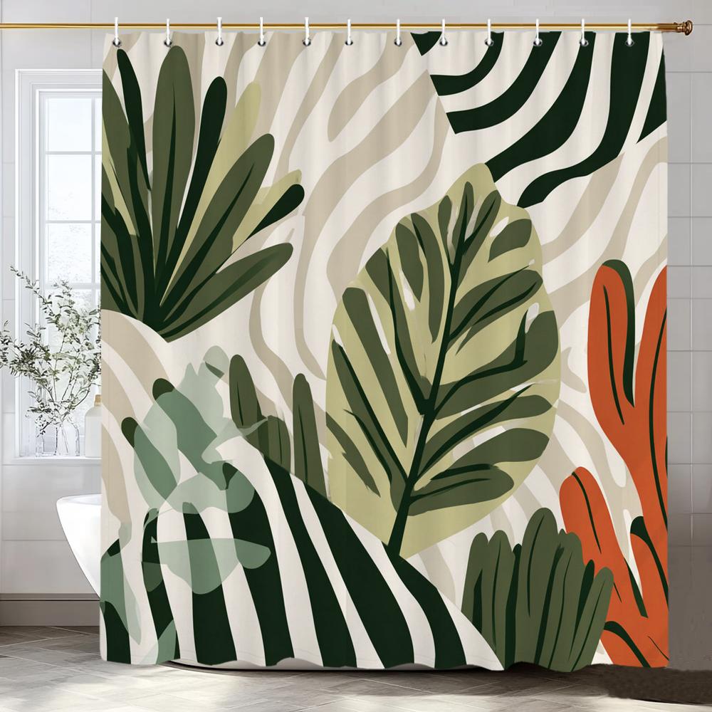 Leaves Print Shower Curtain,Tropical Plants and Leaves Bathroom Decoration Curtain Partition Privacy Hanging Curtain with Hooks